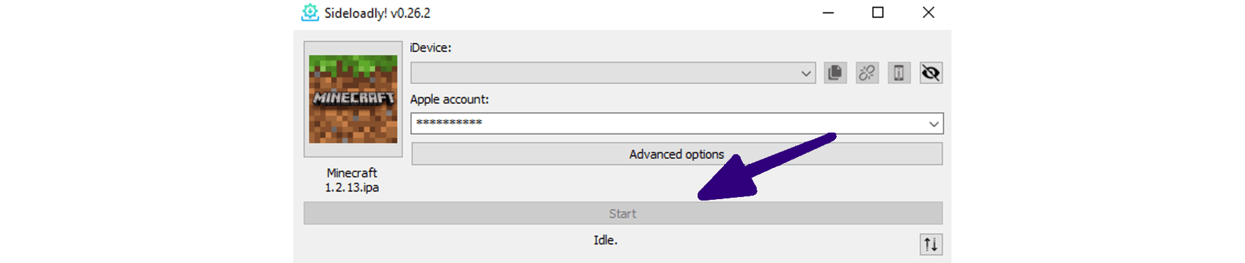 2. Run sideloadly, insert the minecraft ipa and log in with your apple id
