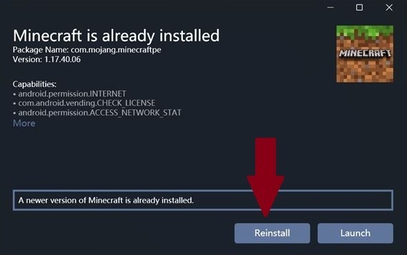 4. Press "Install" or "Reinstall" depends if you already have minecraft